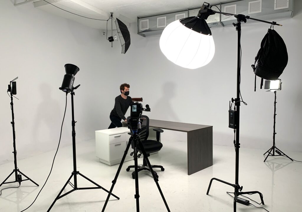 À l’aide d’un équipement de qualité —caméra, trépied, rail et stabilisateur motorisés, cage et poignées– le vidéaste s’est alors adonné à une gestuelle précise, presque dansante, pour passer du proche au lointain, etc.